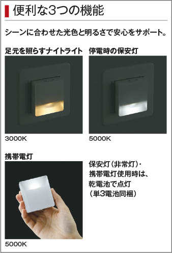 ●保安灯・携帯電灯点灯時間:30分間毎に自動消灯(延べ約15時間)