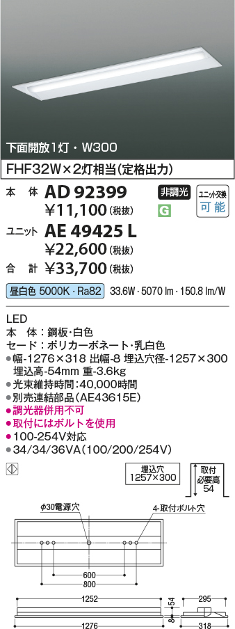 [AE49425L] 別売部品|コイズミ照明