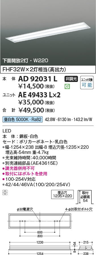 [AE49433L] 別売部品|コイズミ照明